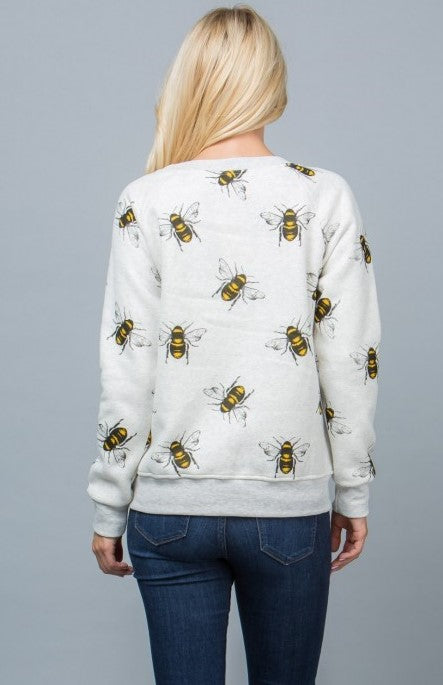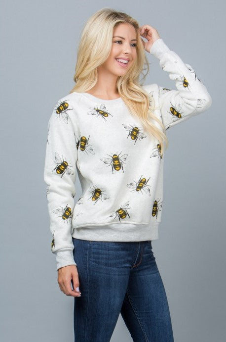 A "bee"-utiful soft and cozy sweatshirt with an adorable bee print.