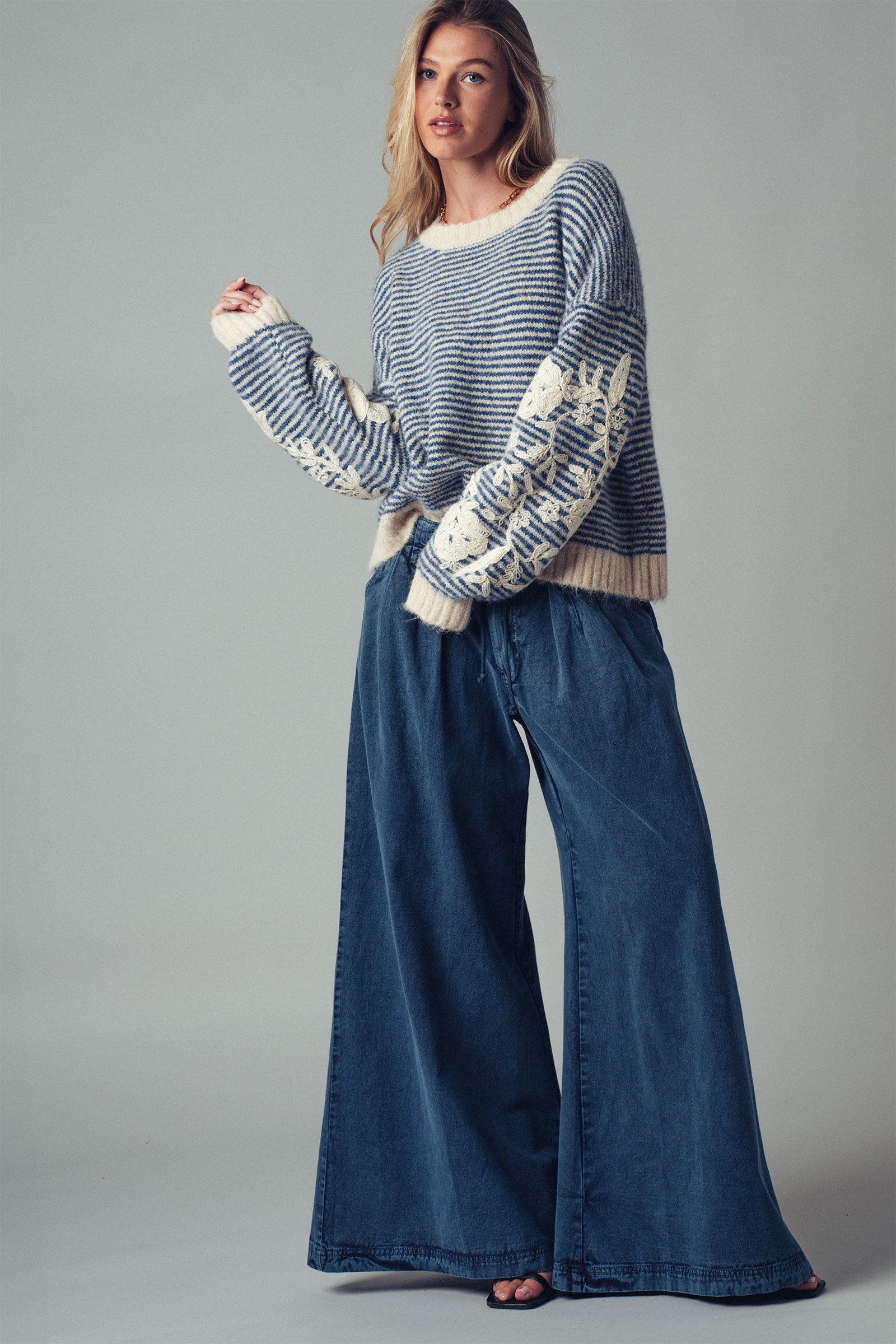 Embroidered Sleeve Detail Sweater