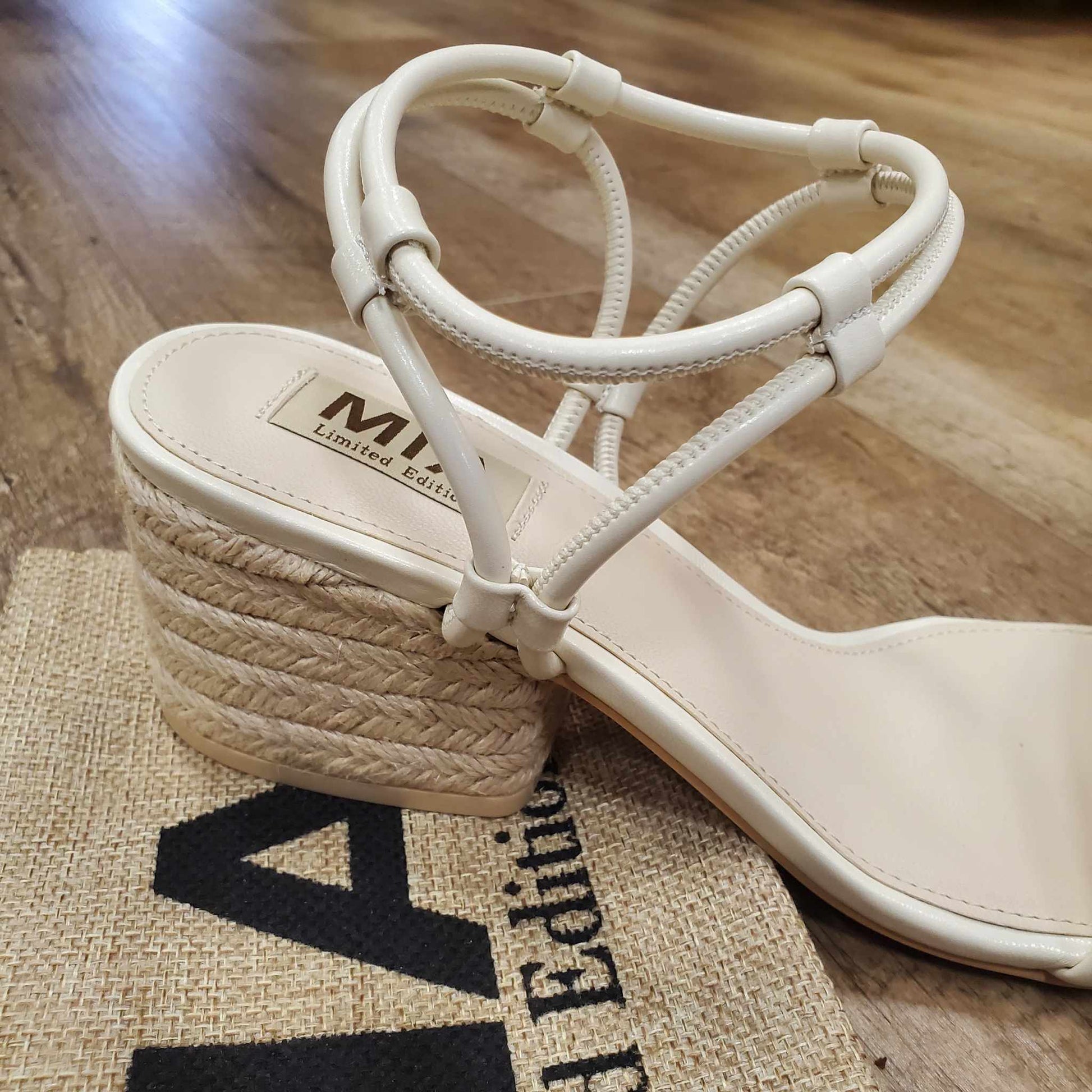 This playful shoe features a slight heel and unique cord-like wrapping around the ankle for a quirky touch. Step into style and stand out from the crowd with this limited edition shoe from MIA.