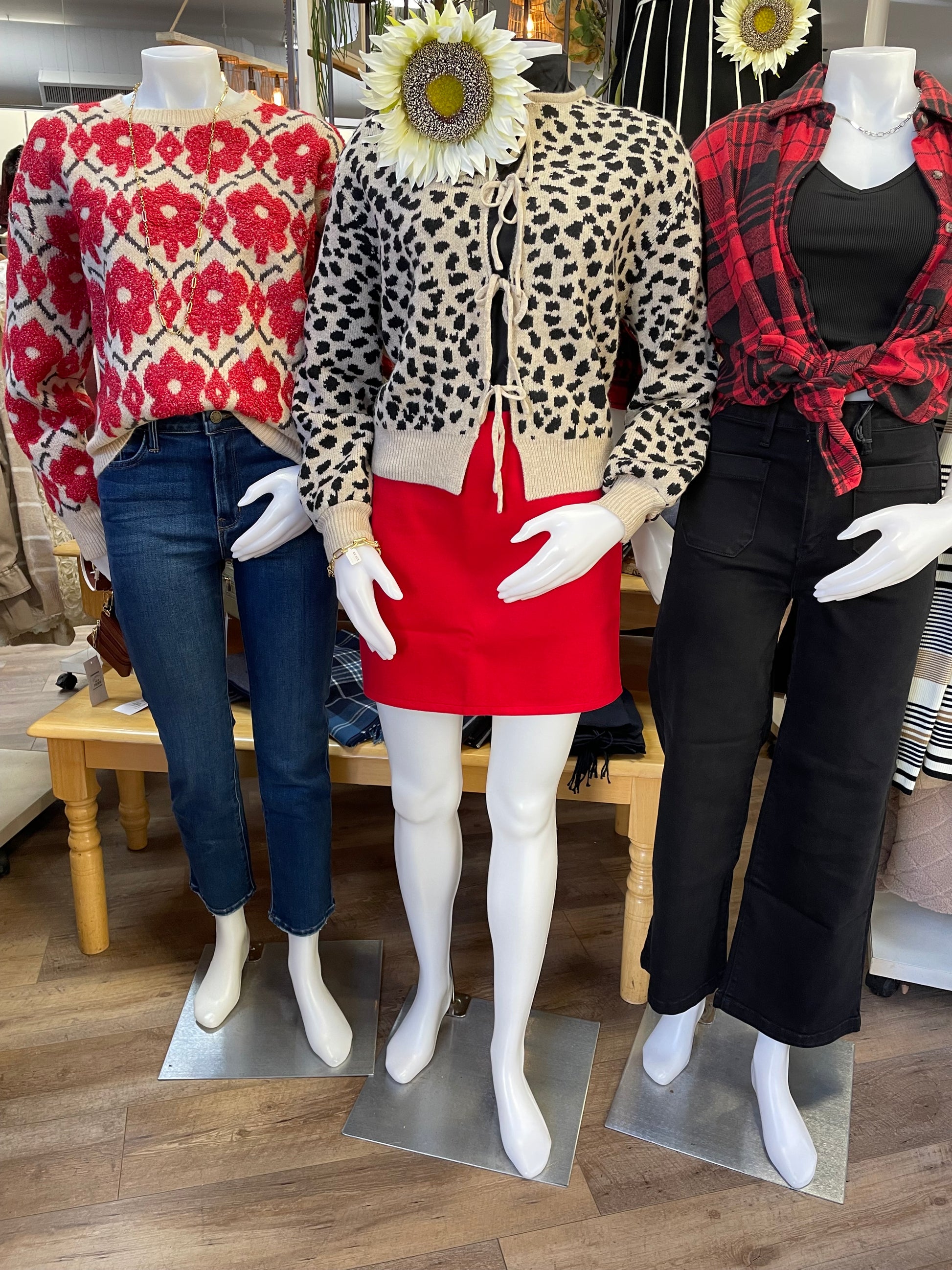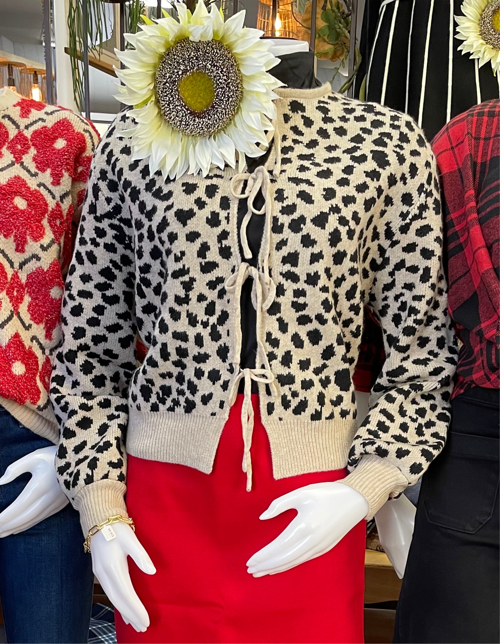 The Animal Print Front Tie Cardigan is your go-to cozy layer with a wild twist. Perfect for cooler days, its fun animal print adds a pop of personality, while the playful front ties keep you on-trend and feeling fabulous all season long.