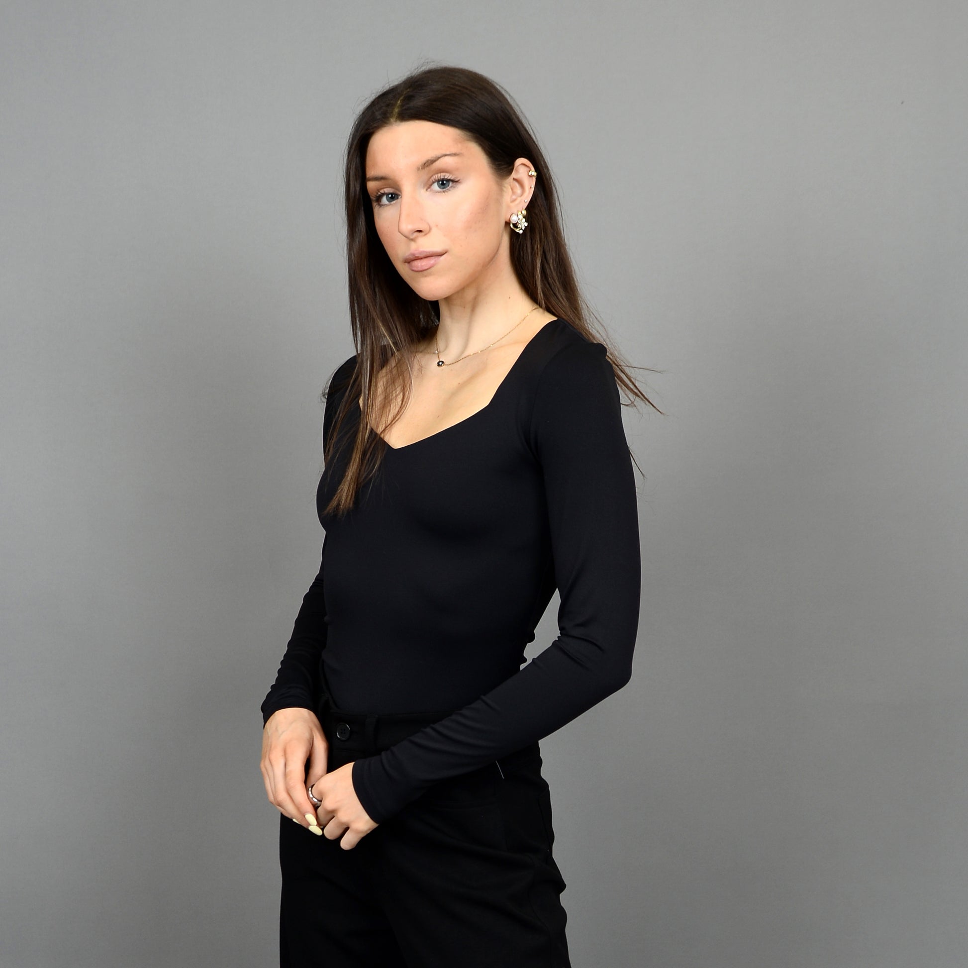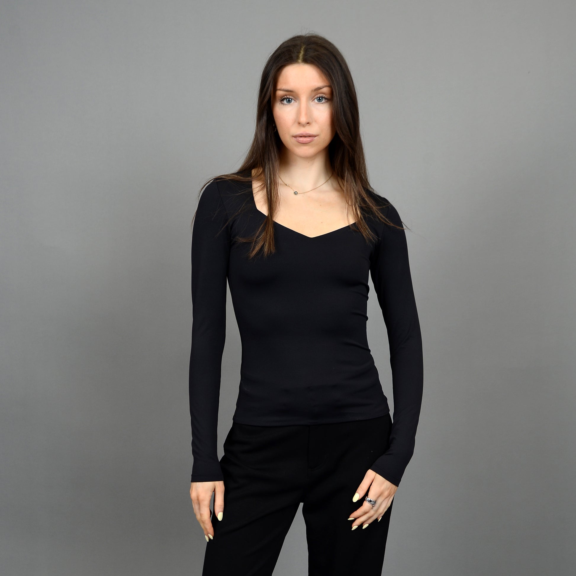 Introducing the Sanna Sweetheart top from RD International - the perfect blend of comfort and style. This top features a sweetheart neckline and long sleeves made from super soft and stretchy modal fabric. Take your wardrobe to the next level with this top!