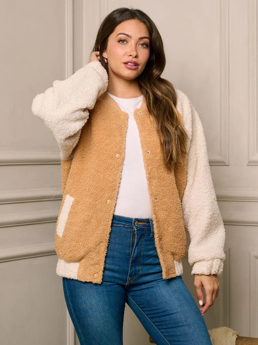 Wrap yourself in warmth with this cozy sherpa jacket, designed with a modern colorblock style and soft, plush texture. Featuring long sleeves and a classic button closure, this jacket is the perfect blend of comfort and casual-cool.