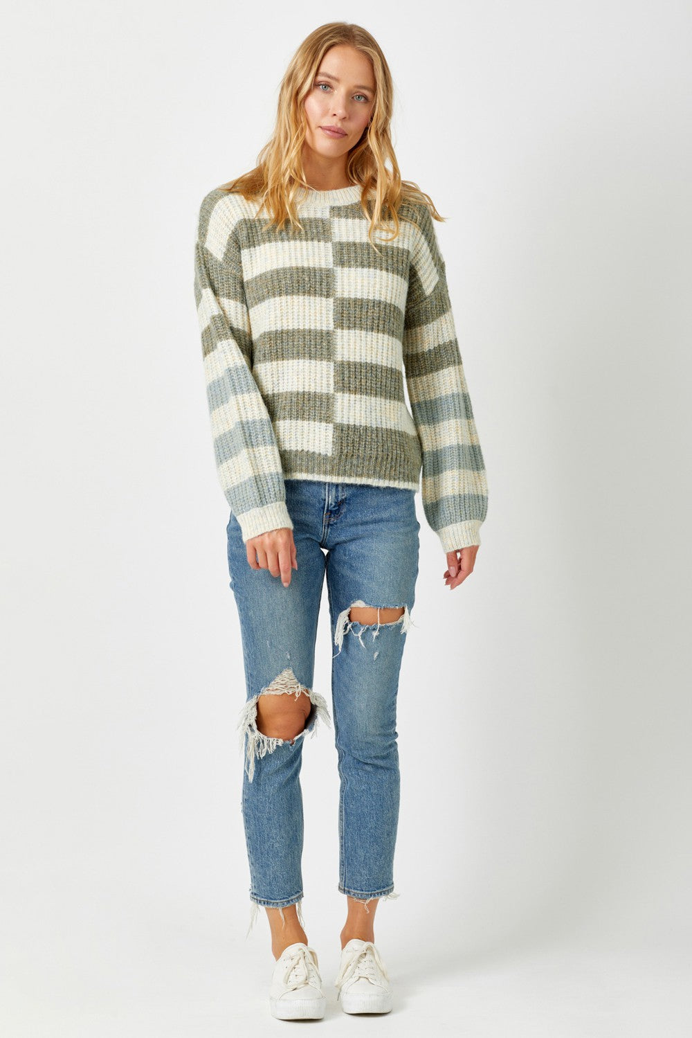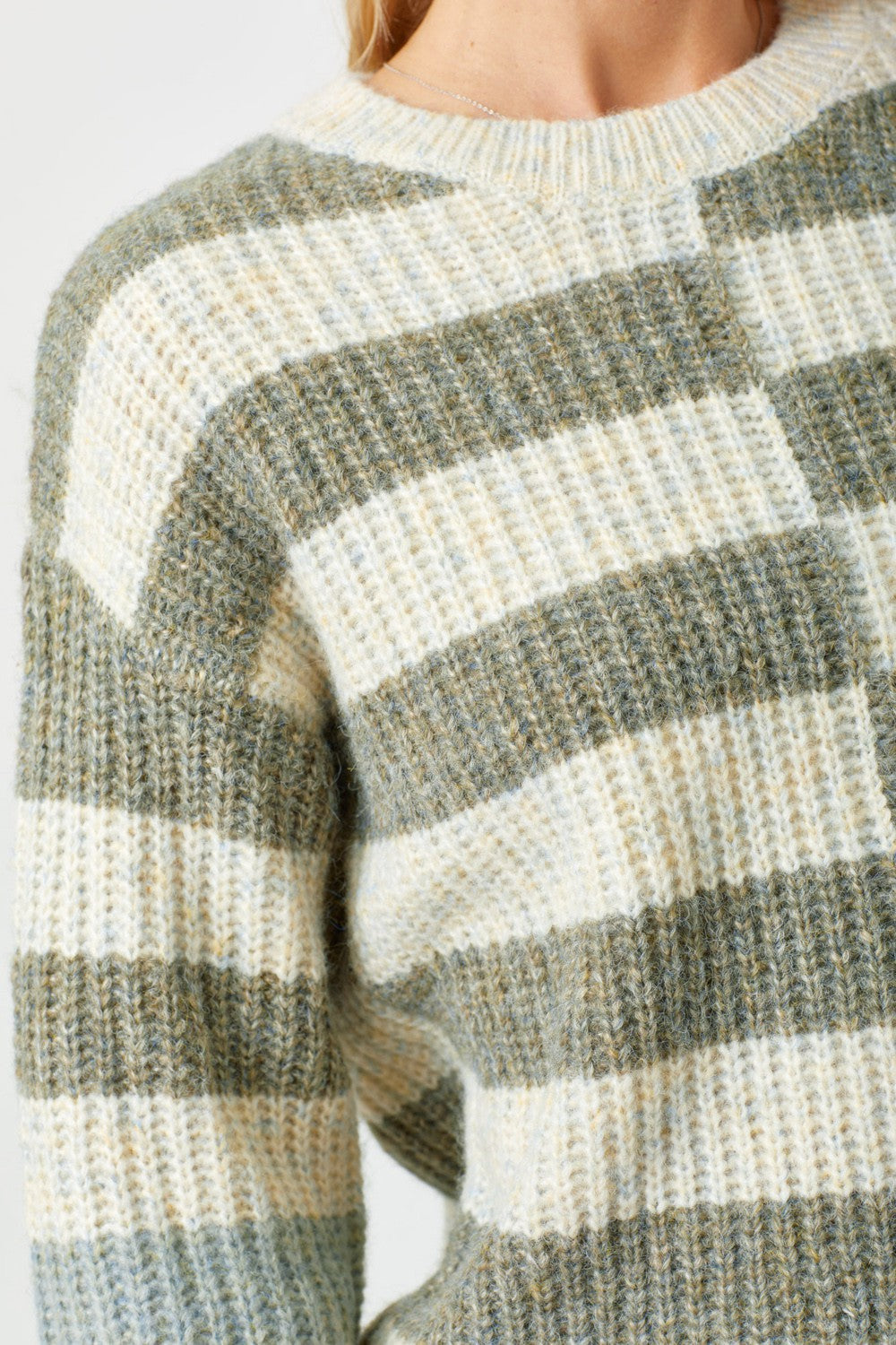 Multistripers, assemble! Our Round Neck Sweater is the perfect pick for smart-casual events, with bubble sleeves, ribbed knit and a tasty (yep, we said it) blend of 42% Polyamide, 33% Acrylic, 25% Polyester.