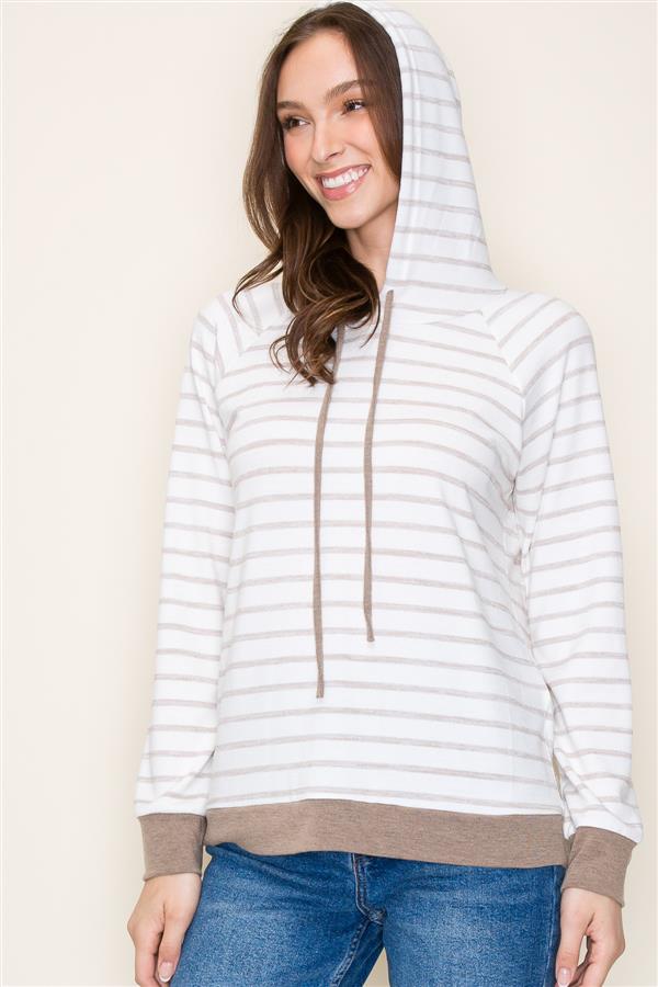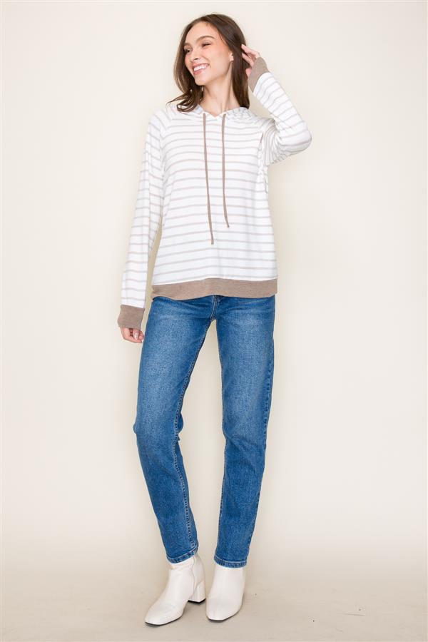 This unique top features a drawstring neck, long sleeves, and a hood - perfect for any weather. The fun and playful stripes add a touch of fun to any outfit!
