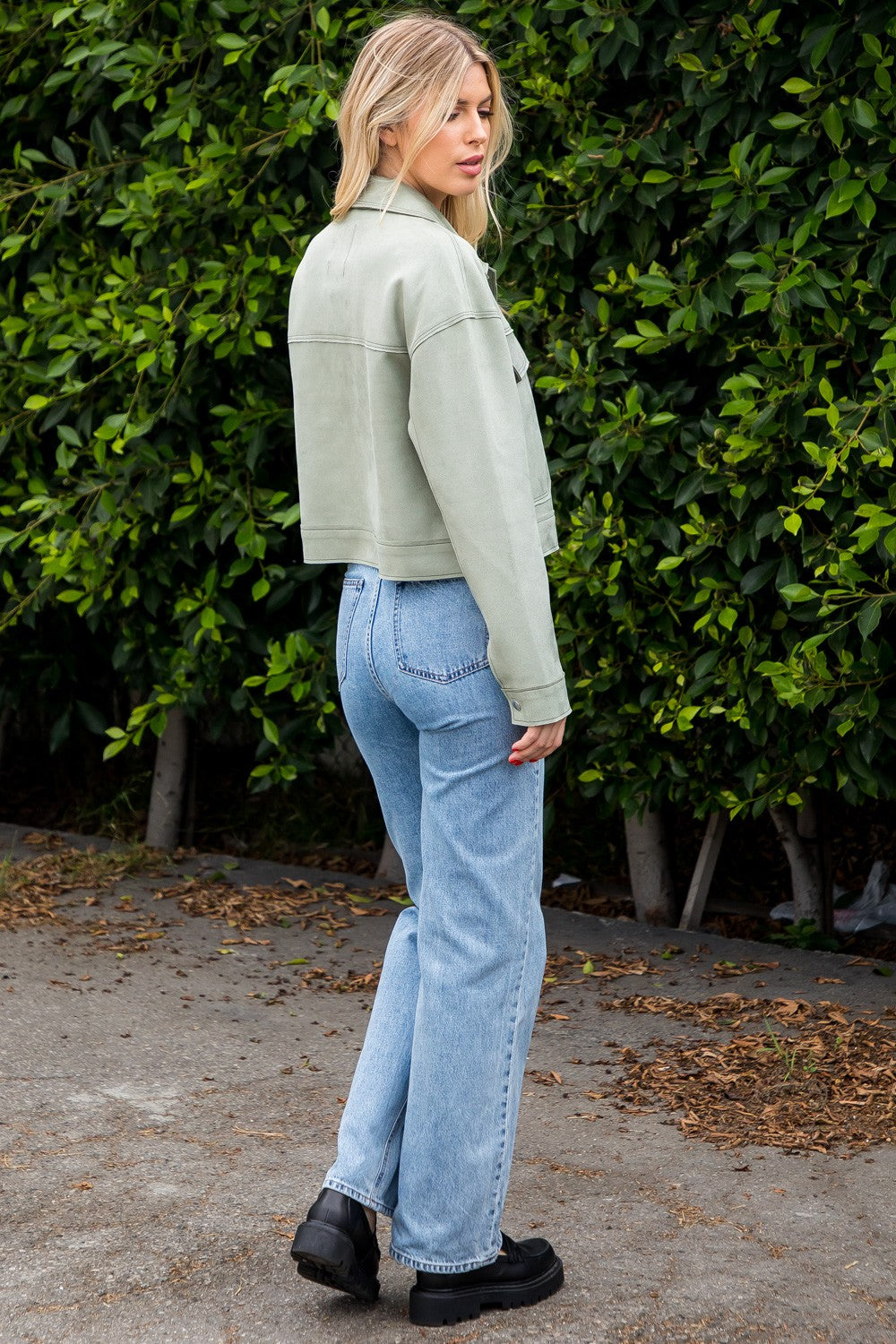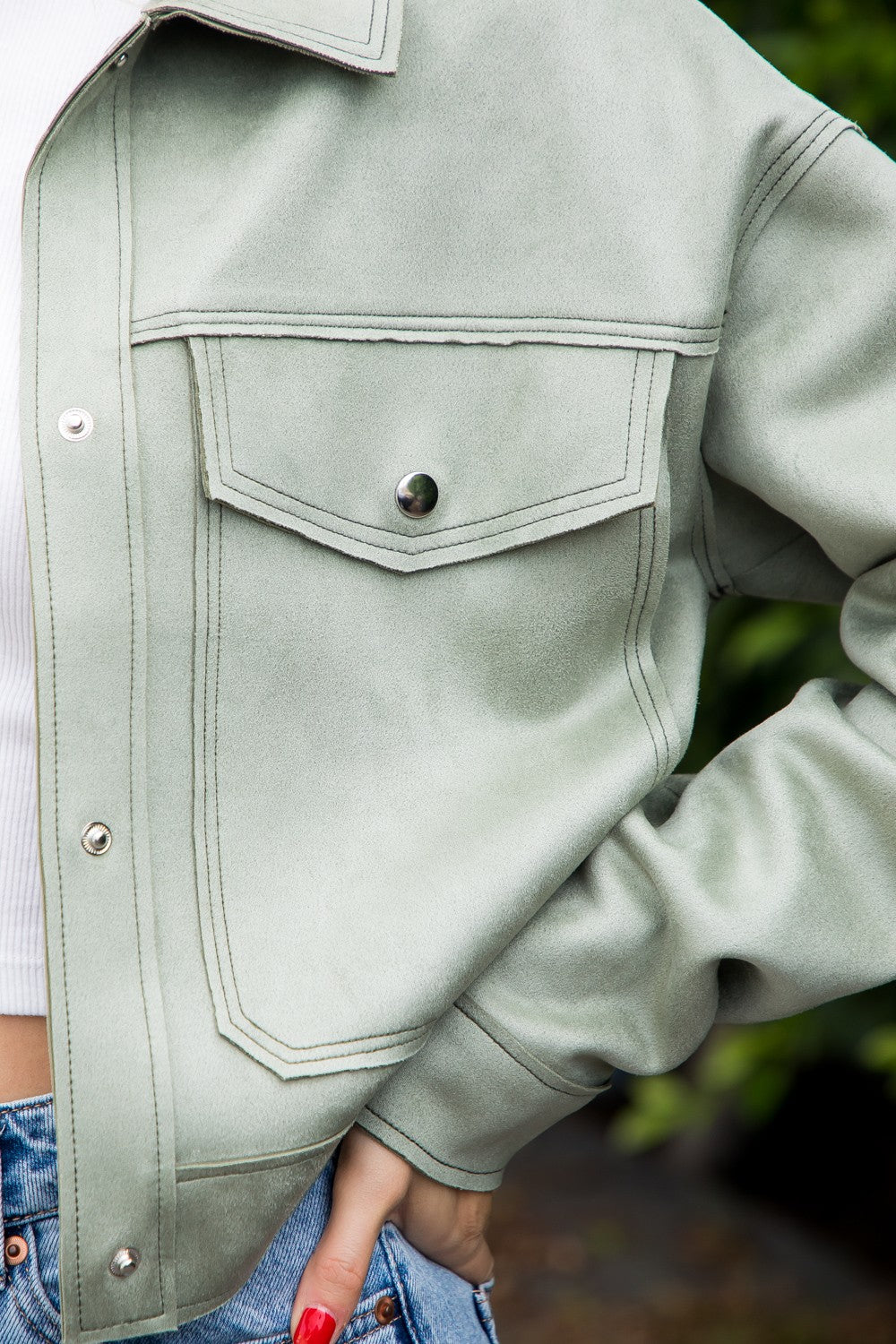 Suede Cropped Jacket - Sage
