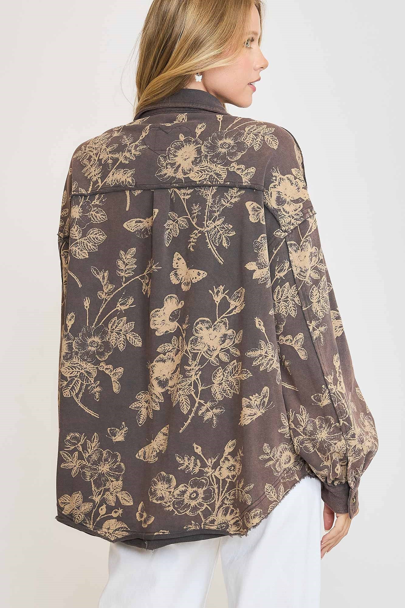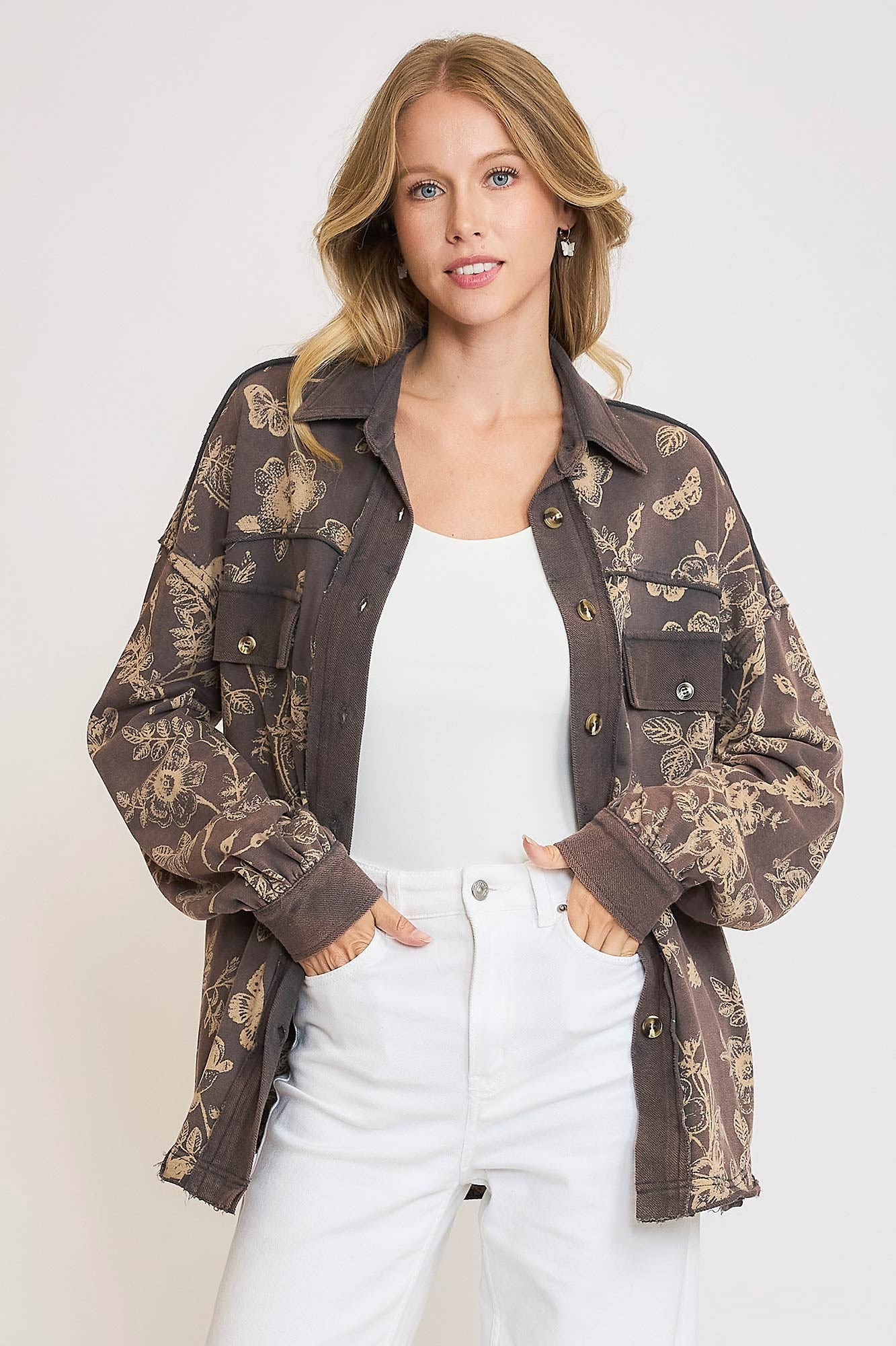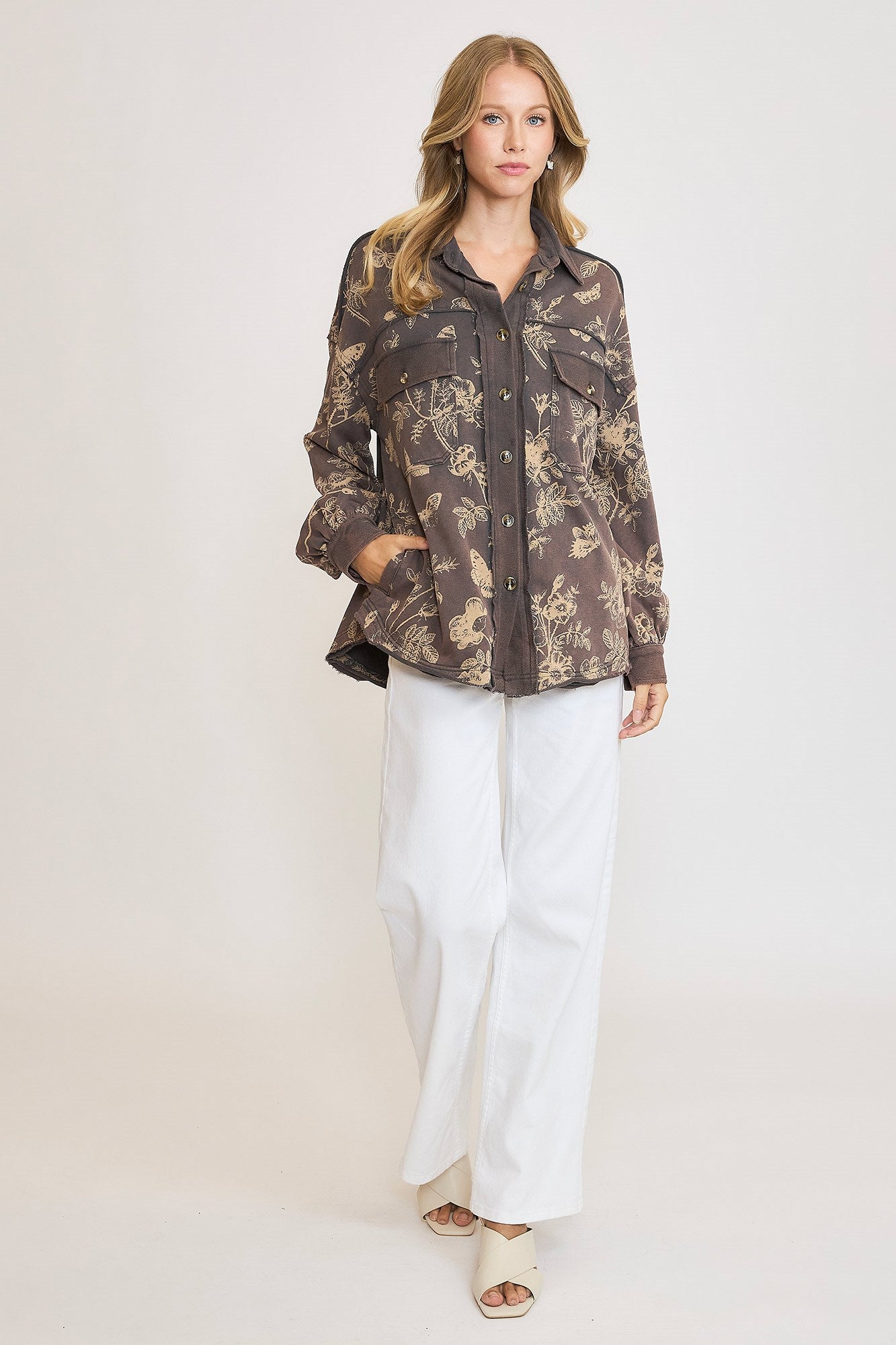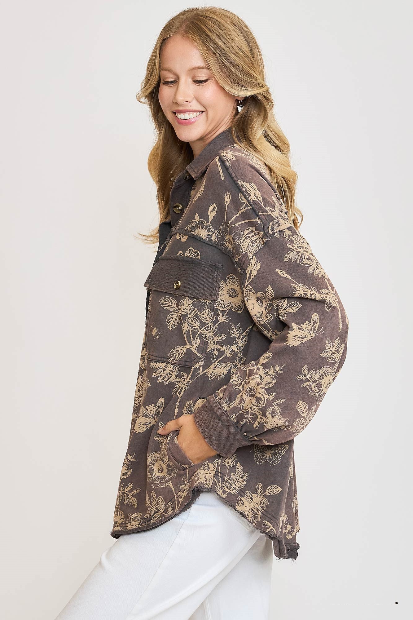 Casual with a feminine touch, this floral print jacket is made from soft washed French terry for a lived-in feel. Designed with a relaxed fit and double front pockets, it layers easily over your everyday looks. Lightweight and unlined, it’s the perfect grab-and-go piece for transitioning through the seasons.
