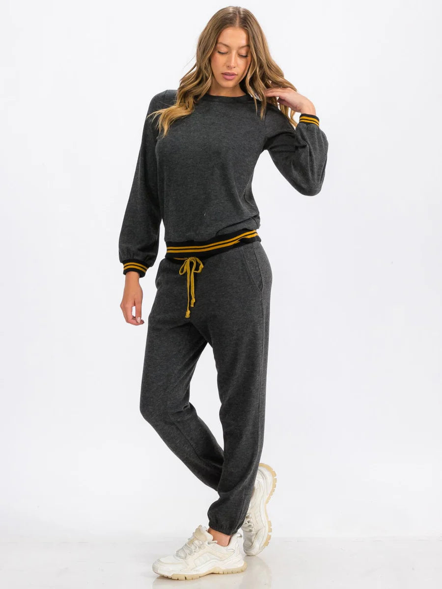 This sweatshirt not only keeps you cozy, but also adds a touch of flair with its trim detail on the bottom hem.