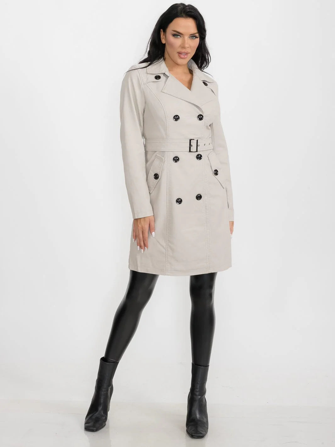 If you're looking to add a bit of edge to your wardrobe, this vegan leather coat is a great choice! It features a button closure, functional pockets, and a belt to give you a more tailored look. It’s perfect for adding a stylish, polished finish to any outfit.