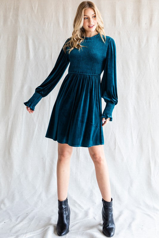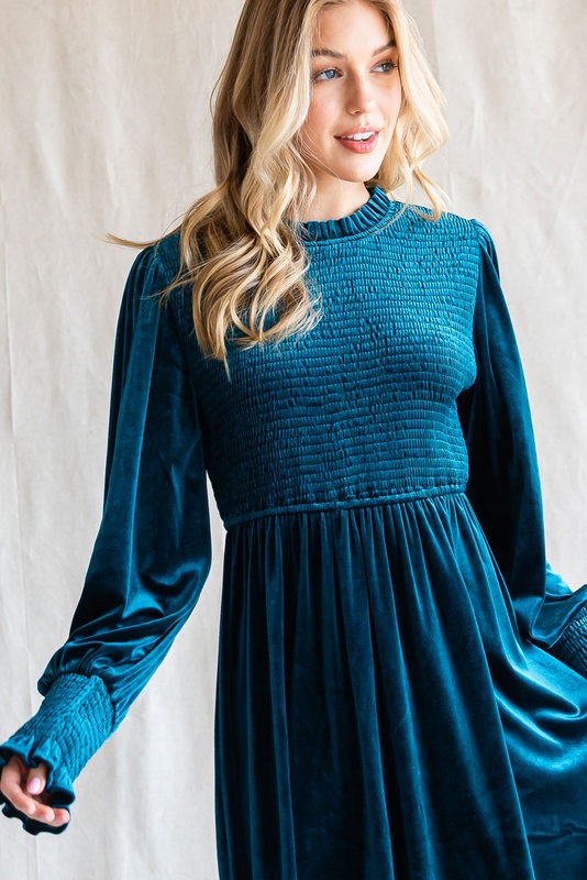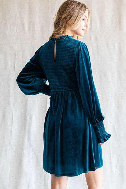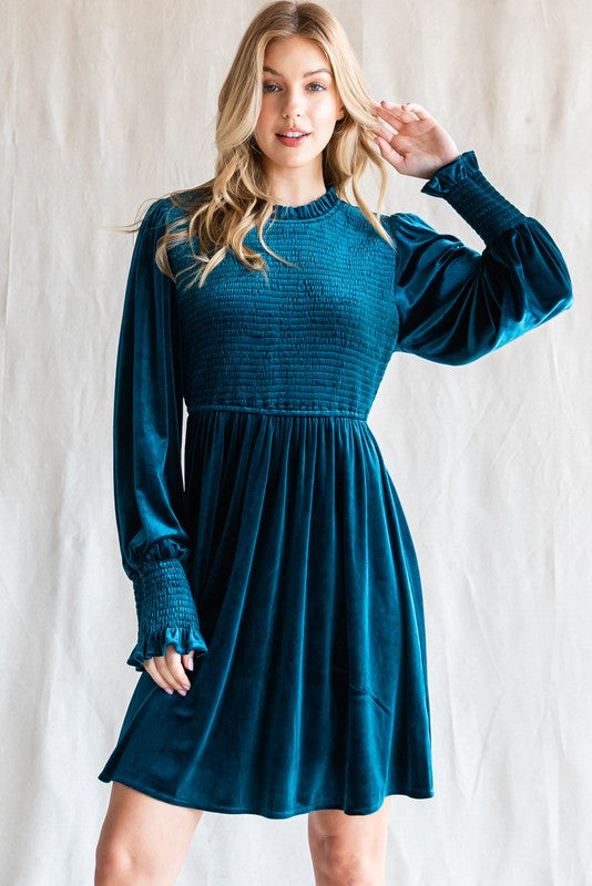 Get ready to make a statement with this dress from Jodifl! Featuring a frilled neck, smocked bodice, and long bubble sleeves with smocked cuffs, this dress is both elegant and playful. The back key hole adds an extra touch of sophistication. Stand out in style and comfort with this unique piece!