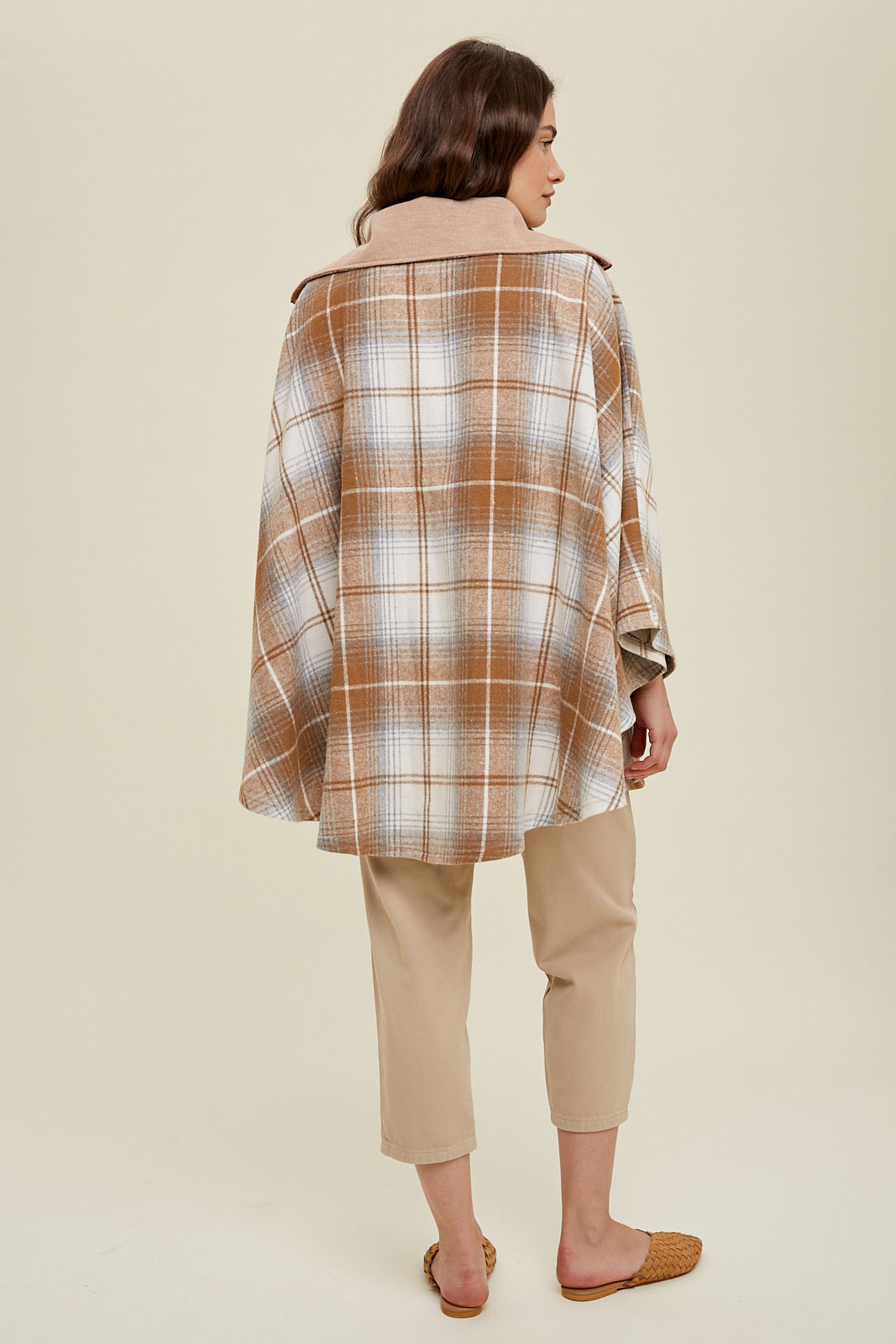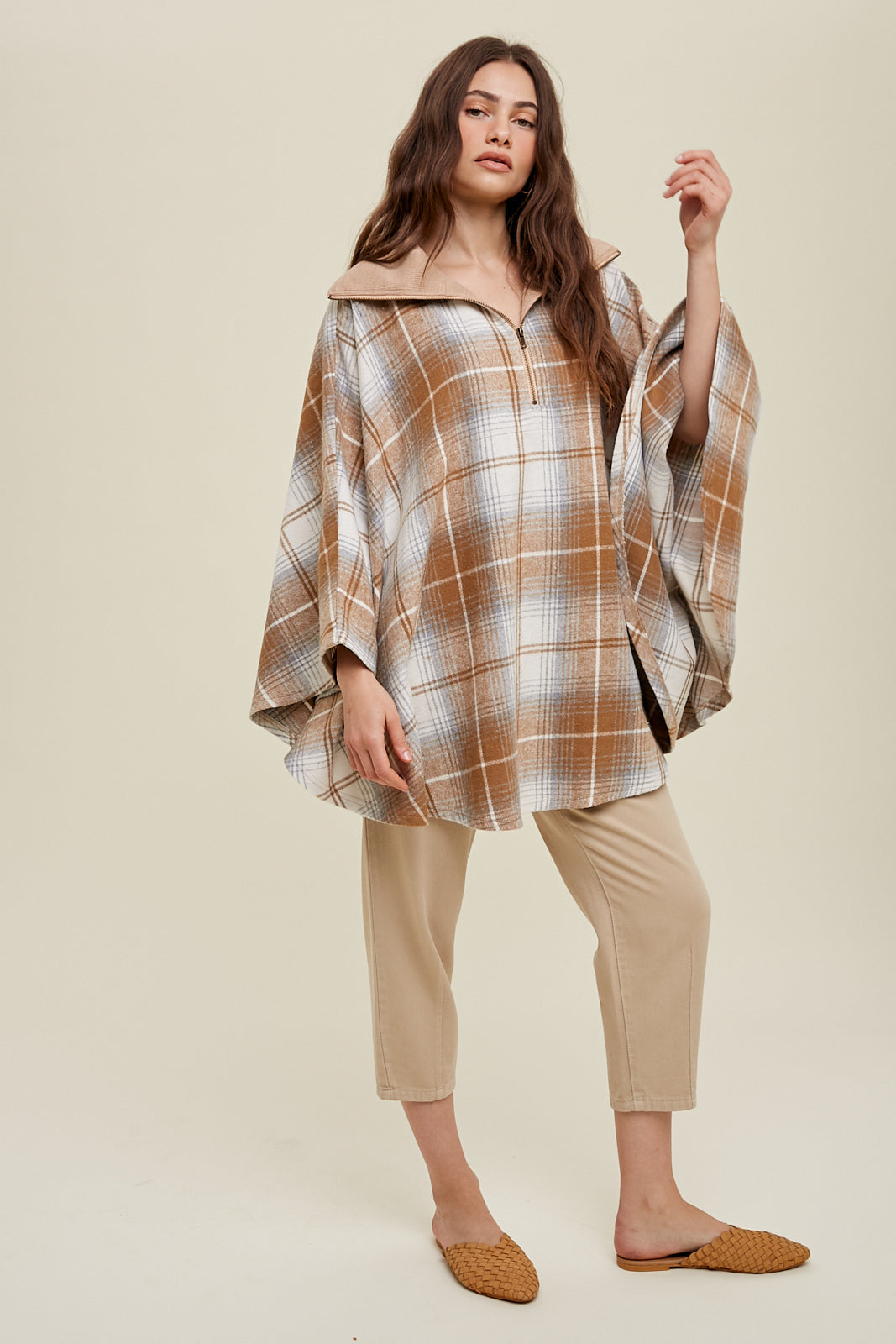 A chic, gorgeous poncho with a half zip and plaid design in colors perfect for fall.